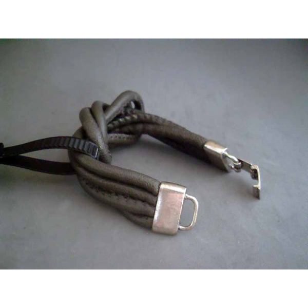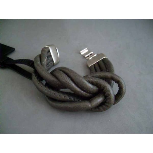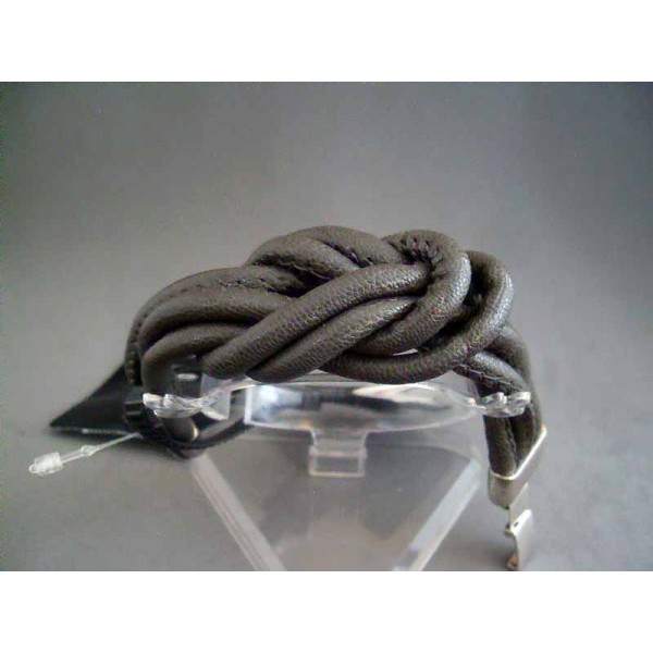 Bratara lata fashion, model Clockhouse, design unic realizat handmade dintr-o impletitura combinata din piele ecologica gri inchis, fixata la capete in metal, cu inchizatoare.